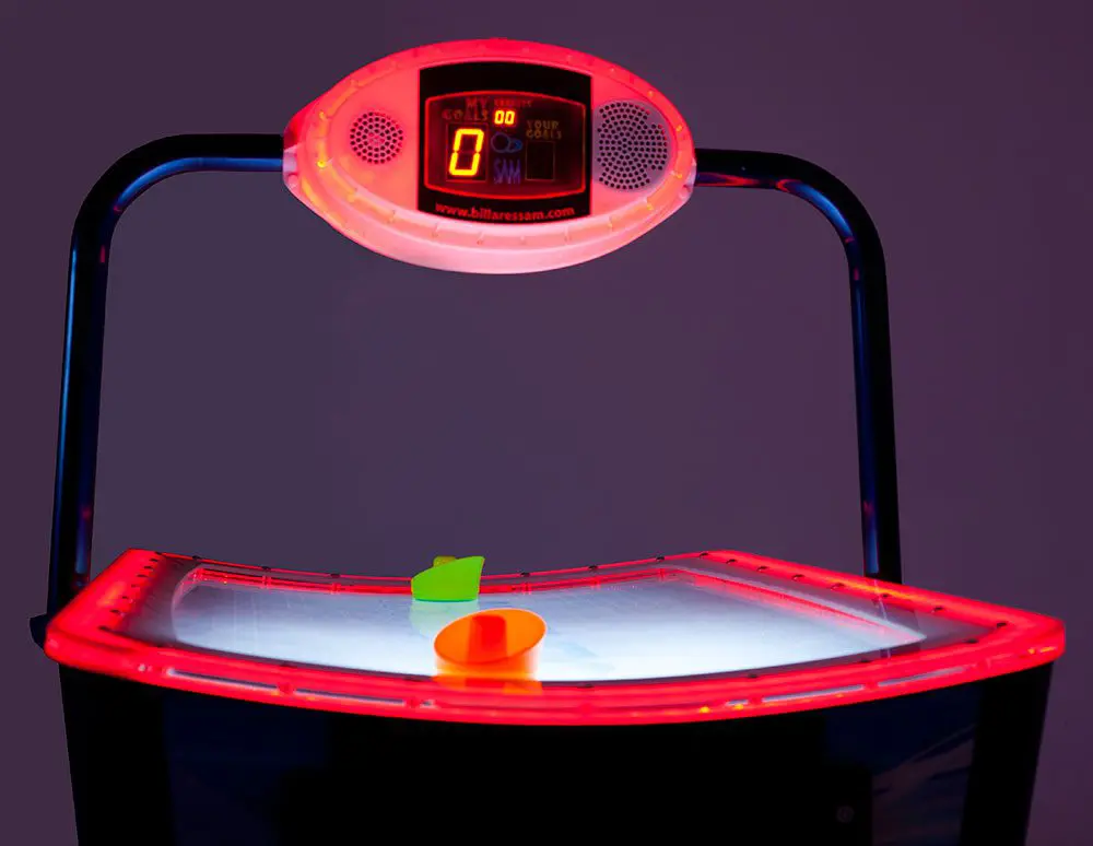 Het SLALOM design nu op de kleinste tafels. De energie en snelheid is aangepast aan de grootte van het authentieke air hockey. Een tafel met baanbrekende nieuwe ontwerpen, geluiden en LED-verlichtingseffecten om de meer veeleisende gebruikers tevreden te stellen: de kinderen.