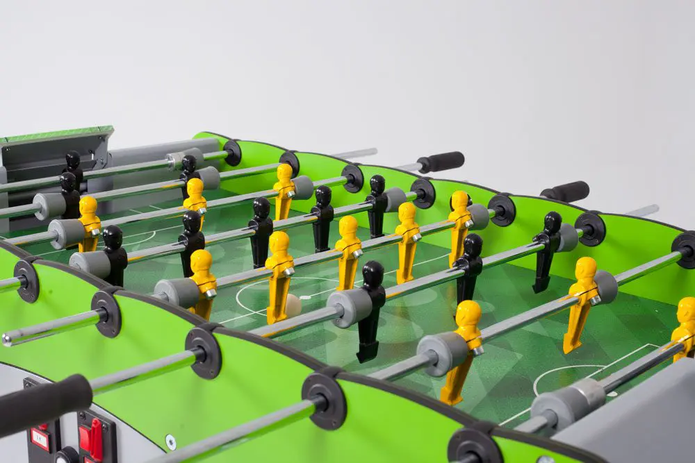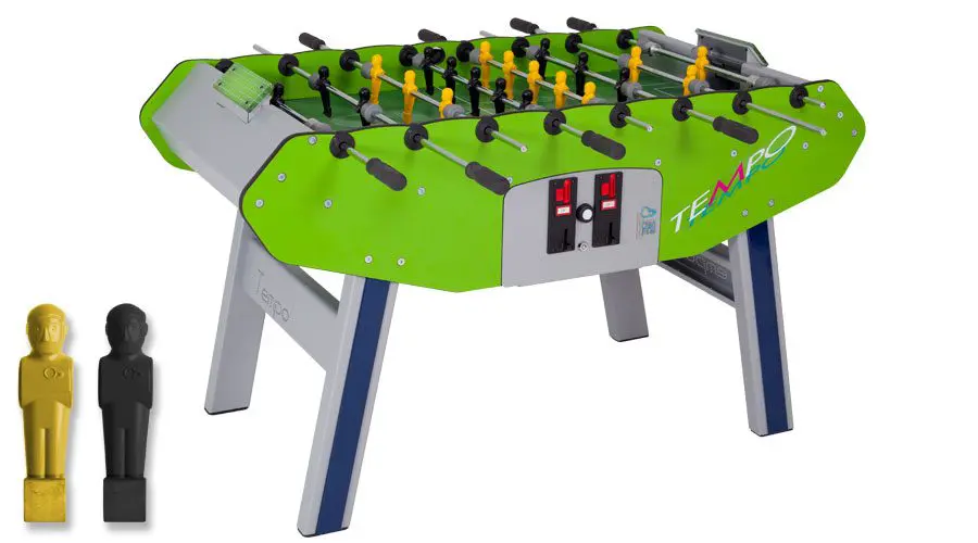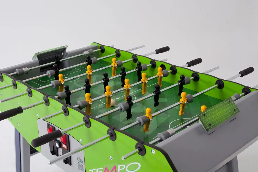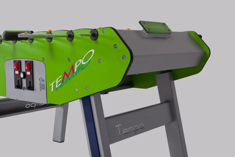 De extra zorgvuldige productie in zeer resistent fenolbord en metalen poten, bedrukt en vlak speeloppervlak en hoogwaardige antislip levellers, maken een spannend en veilig spel en de beste voetbaltafel voor buiten ter wereld. De handmatige of elektronische muntinworp en de grote verwijderbare muntautomaat maken TEMPO EVO tot de leider in slechte weersomstandigheden en garanderen veiligheid voor operators.